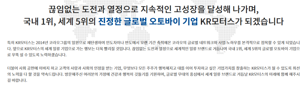 | 사업 내용 | 국내 대표 모터사이클 제조업체, 전기이륜차 사업 본격화 |