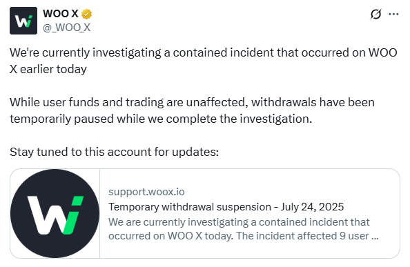 | 빗썸 및 코인원 조치 | WOO 입출금 서비스 일시 중단 |