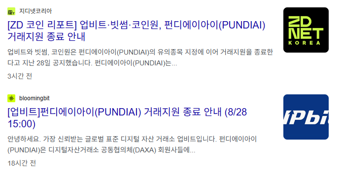 업비트, 빗썸, 코인원 DAXA 펀디에이아이(PUNDIAI) 거래 종료: 핵심 요약 📌
