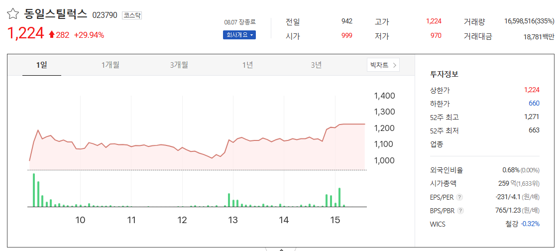 핵심 요약: 동일스틸럭스 주가 상승 모멘텀 분석 📊
