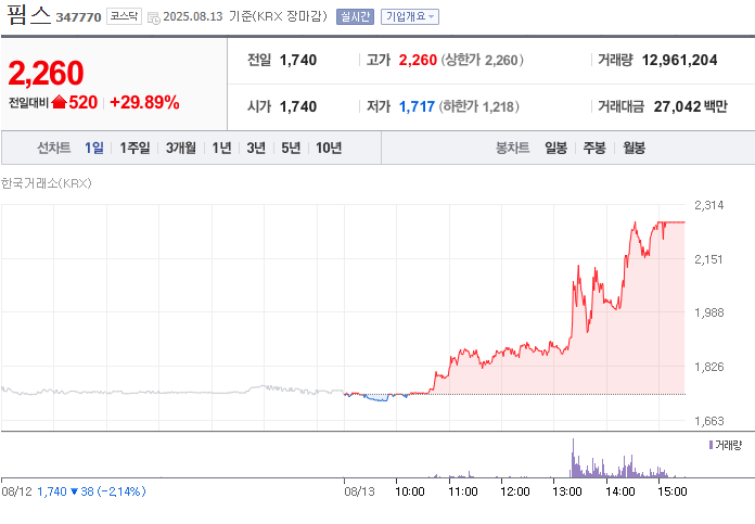 2025년 8월 13일 기준으로 핌스의 주가는 7.5% 이상 상승하며 시장의 주목을 받았습니다. 이는 OLED 산업 전반의 긍정적인 분위기와 함께 여러 요인이 복합적으로 작용한 결과입니다.
