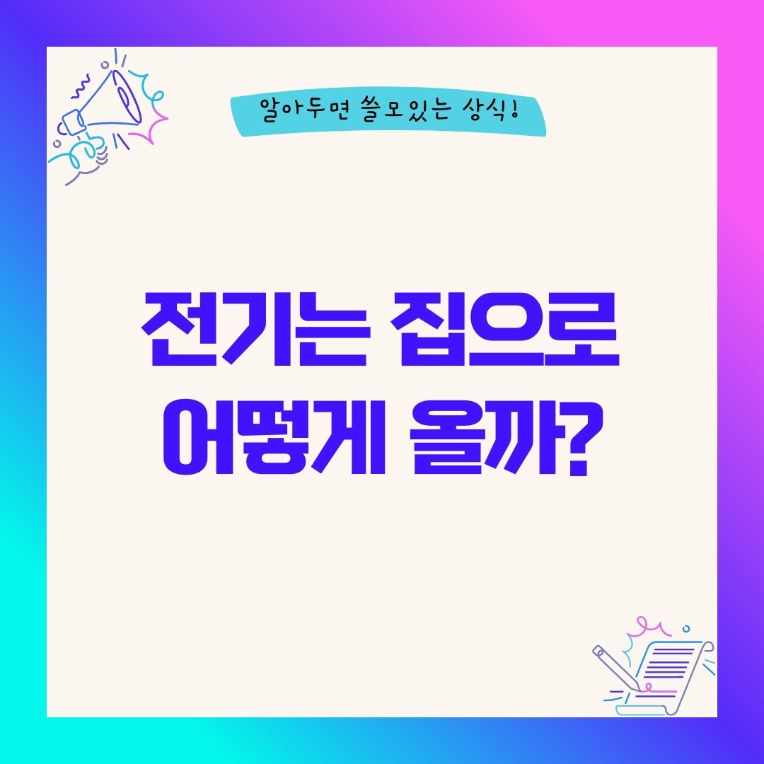 마지막으로 전기는 전봇대 변압기 → 전선 → 전기계량기를 거쳐 각 가정으로 들어옵니다. 이후 집안의 분전반을 통해 방별, 기기별로 전기가 분배되며 우리가 사용하는 콘센트와 스위치로 연결됩니다.