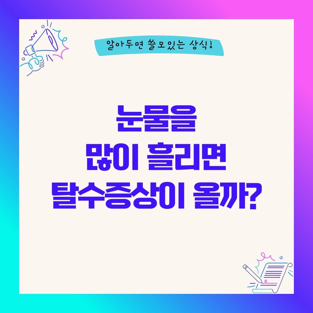 눈물을 많이 흘리면 일시적으로 안구 주변 부종, 피로감, 두통이 동반될 수 있습니다. 그러나 이는 탈수가 아닌 혈류 변화 및 감정적 긴장 해소 과정에서 나타나는 일시적 생리 반응에 가깝습니다.