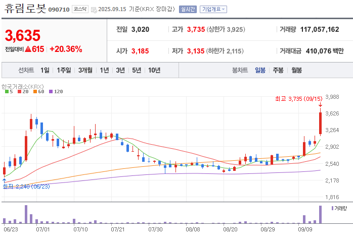 휴림로봇(090710)은 산업용 로봇과 서비스 로봇을 아우르는 국내 대표 로봇 전문 기업으로, 자동화 수요 증가와 고령화 사회라는 두 가지 흐름 속에서 성장 동력을 확보하고 있습니다.