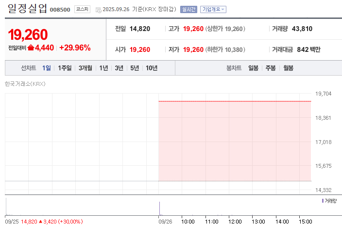 9월 26일에 일정실업 주가가 종가 19,260원으로 +29.96% 상승하며 상한가를 기록했는데요. 그 원인은 단 하나, 바로 '액면분할 공시'였습니다. 액면분할이 대체 뭐길래 이렇게 시장의 관심을 한 몸에 받았을까요?