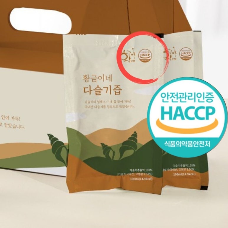 아무리 좋은 원료라도 제조 과정이 불결하면 안 되겠죠? 황금이네 다슬기즙은 HACCP 인증 환경에서 제조되어 위생과 안전에 대한 염려를 덜 수 있었어요.