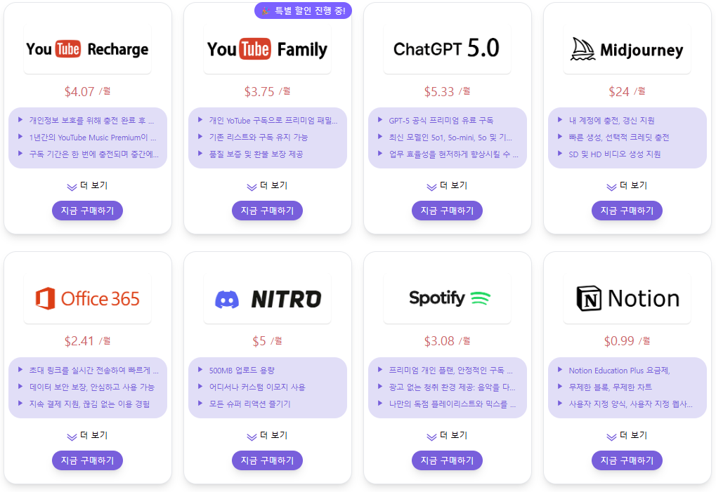 🌐 유튜브 외 다른 구독 서비스 할인도 받기 💡